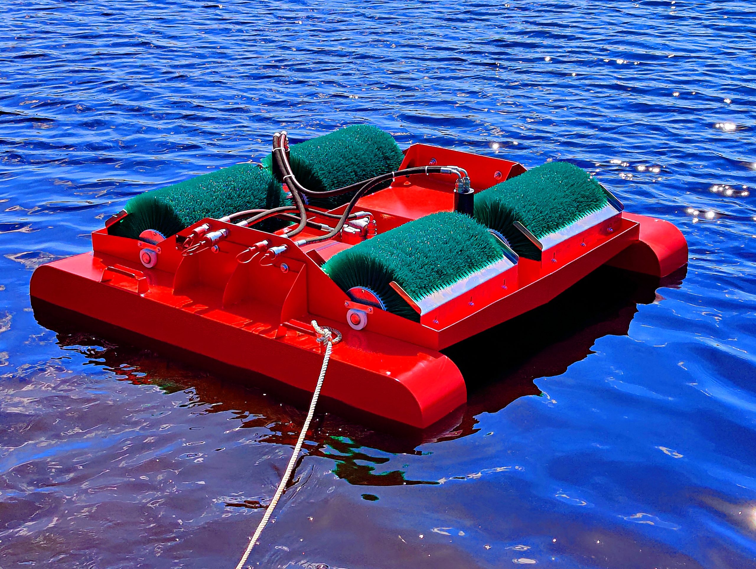 • скиммер (нефтесборщик) с четырьмя рабочими органами, по выбору заказчика могут быть щеточными, дисковыми, барабанными.
