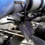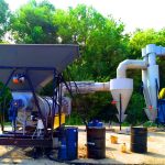 2.Установка УУН-08 комплектуется газовой или жидкотопливной горелкой, которая разогревает и поджигает нефтешлам, который постоянно перемешивается при помощи лопастей. В процессе горения сжигаемый продукт продвигается по трубе в сторону выгрузки, при этом скорость продвижения зависит от угла наклона установки относительно горизонта, и производительности вытяжного вентилятора.
