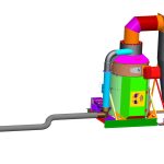 1-Станина (с дополнительно установленным вентилятором охлаждения горелки), 2- Воздуховодный рукав, 3-Камера сжигания; 4- Соединительная труба, 5- Пульт управления со встроенным электрическим шкафом, топливным баком, вентилятором, 6- Стержень для перемешивания, 7- Горелка, 8- Циклон, 9- Топливные рукава, 10 – Подъемное устройство (домкрат гидравлический), 11-Площадка.