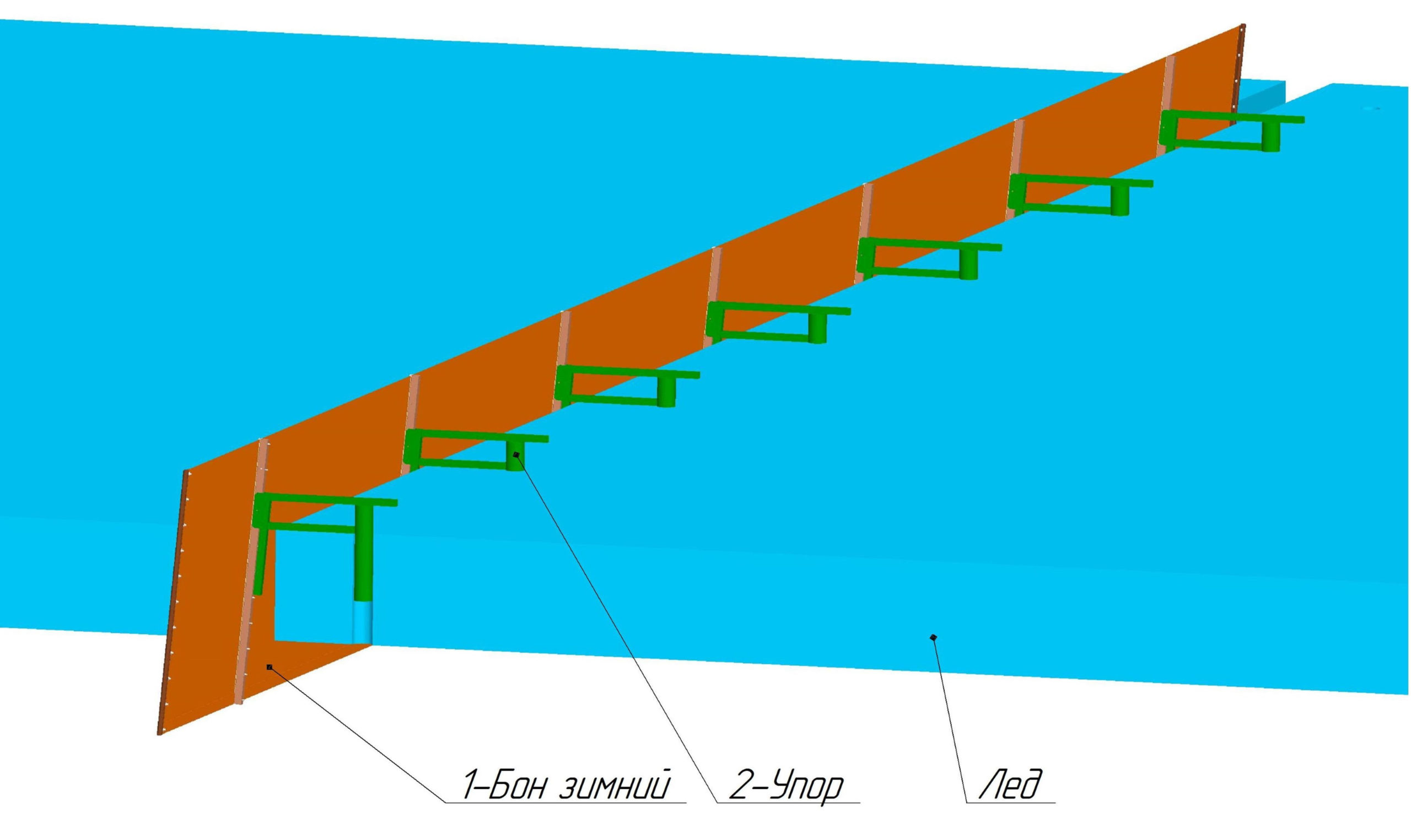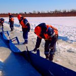 Эксплуатация заграждения должна осуществляться на водоемах со скоростью течения не более 1,0 м/с. и при толщине льда от 0,25 до 0,90 м